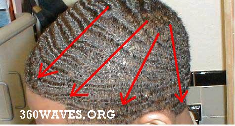 This is the pattern you should be brushing in. Brush every single day. Put a brush in your room, car, bookbag, EVERYWHERE! Get your time in, it will show later. You need to be brushing every single day for at least 20 total minutes a day. Always use a little pink lotion or carrot creme when you are first waving or if you have very kinky hair.